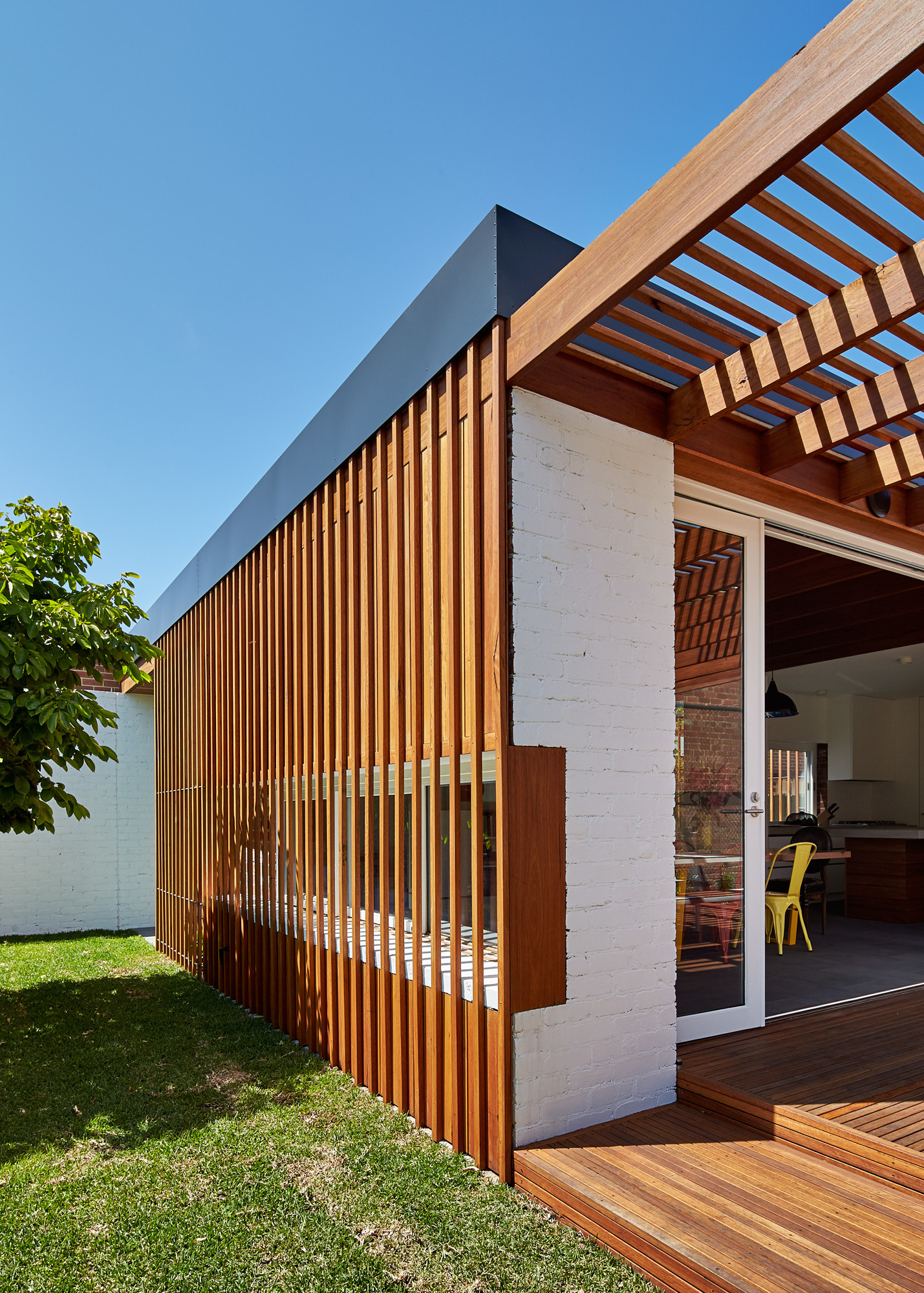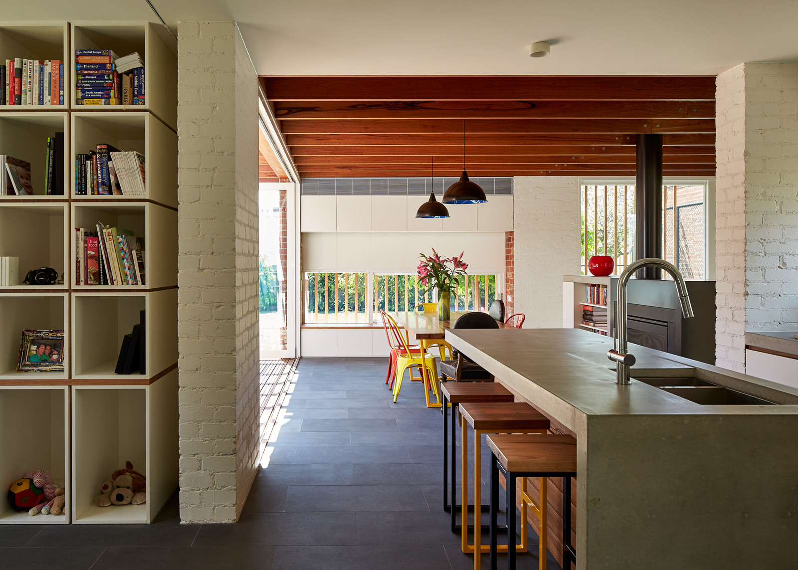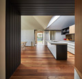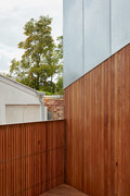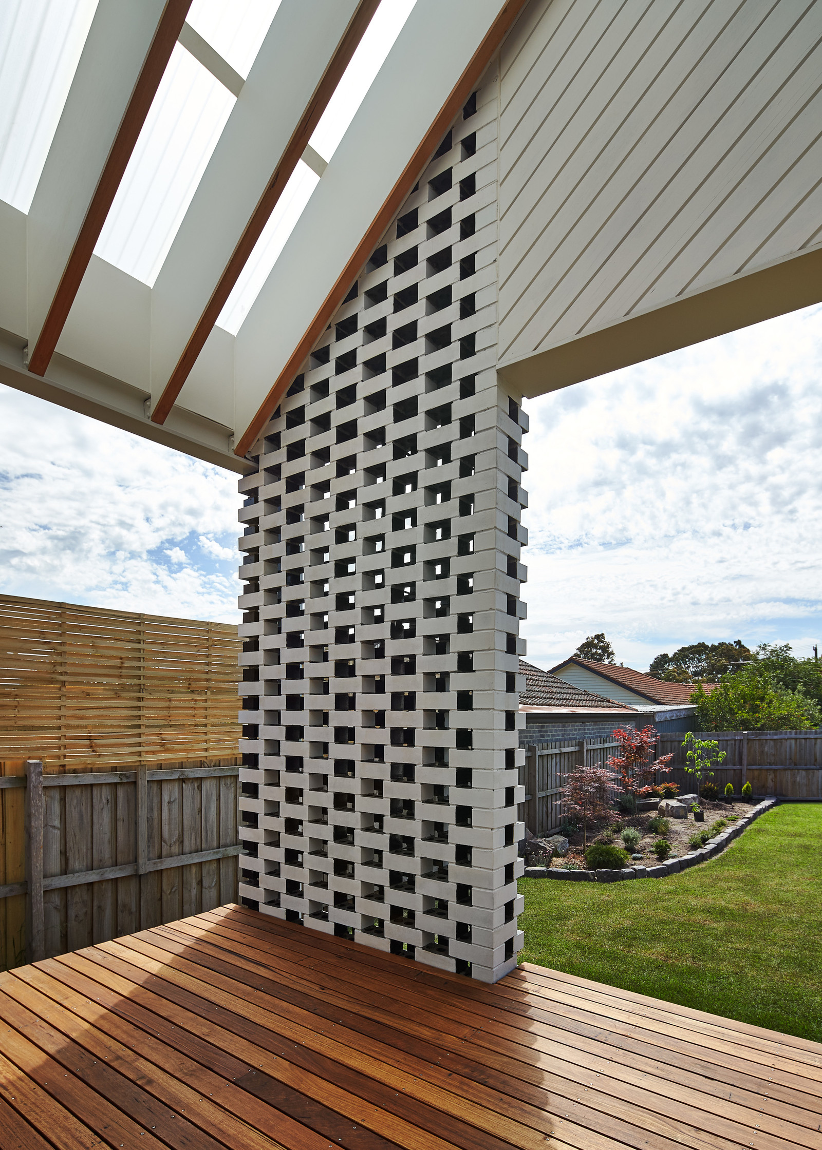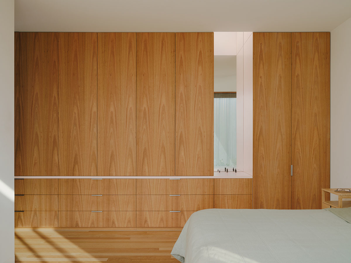 This project demonstrates the power of a geometric aberration. Located in Warracknabeal, the birthplace of Nick Cave, the original house was designed by Peter Staughton, later extended by his sons Stephen and James. Where the work of the two generations meet, their geometries find a moment of distinct discomfort. Rather than seeking harmonious resolution, brothers Staughton lean-in, brutally highlighting the disjunct with a coat of retro-reflective film to catch the headlights of passing cars.