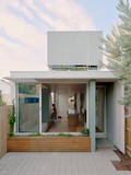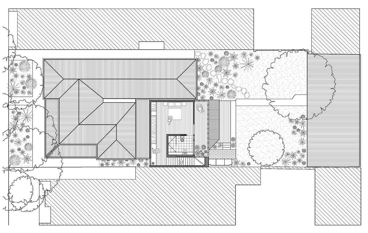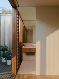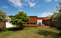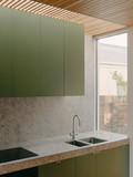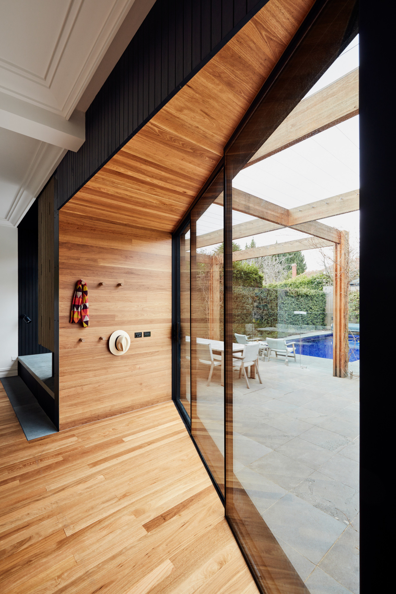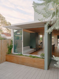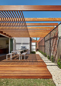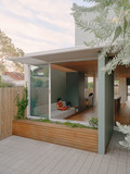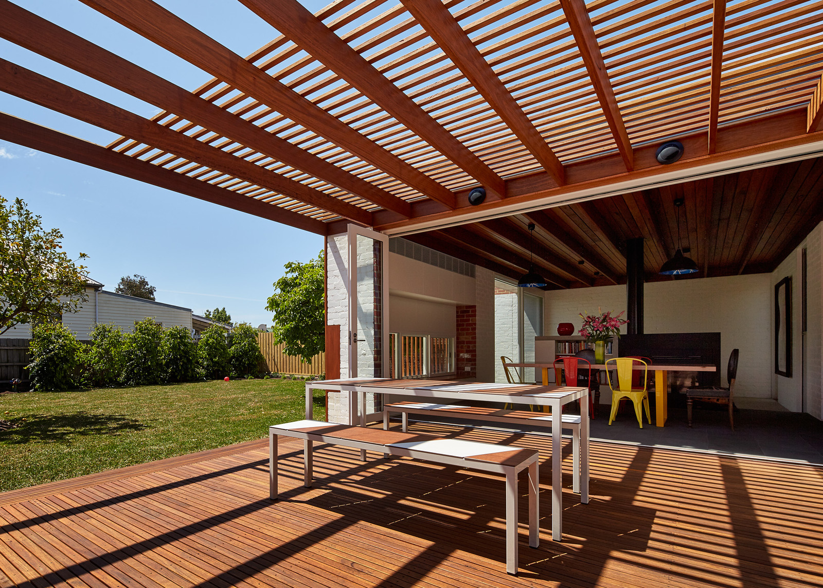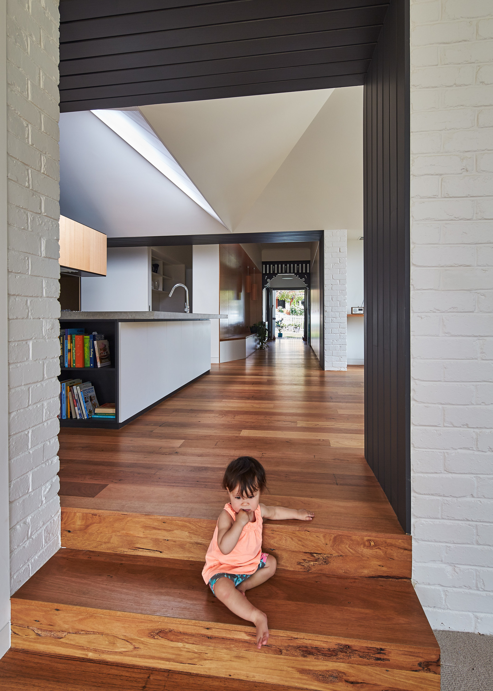 This project demonstrates the power of a geometric aberration. Located in Warracknabeal, the birthplace of Nick Cave, the original house was designed by Peter Staughton, later extended by his sons Stephen and James. Where the work of the two generations meet, their geometries find a moment of distinct discomfort. Rather than seeking harmonious resolution, brothers Staughton lean-in, brutally highlighting the disjunct with a coat of retro-reflective film to catch the headlights of passing cars.