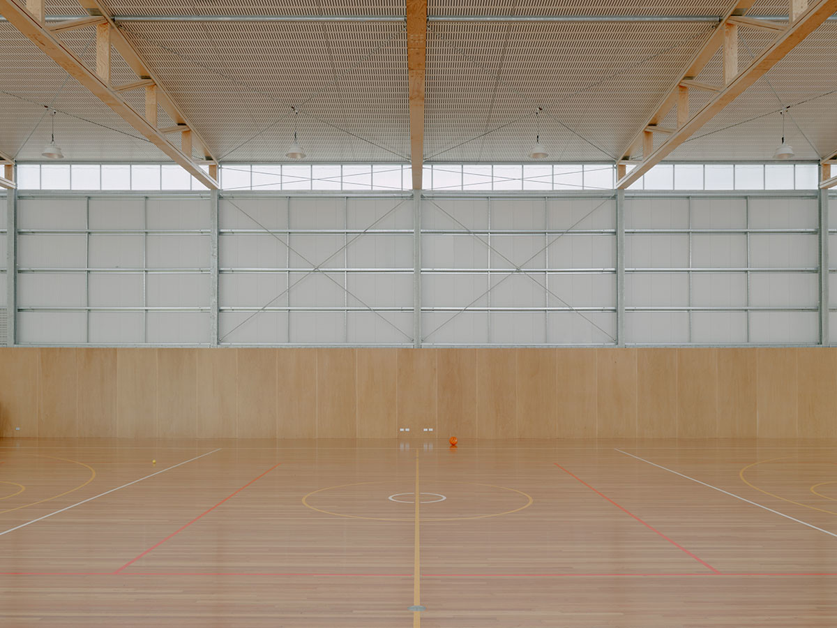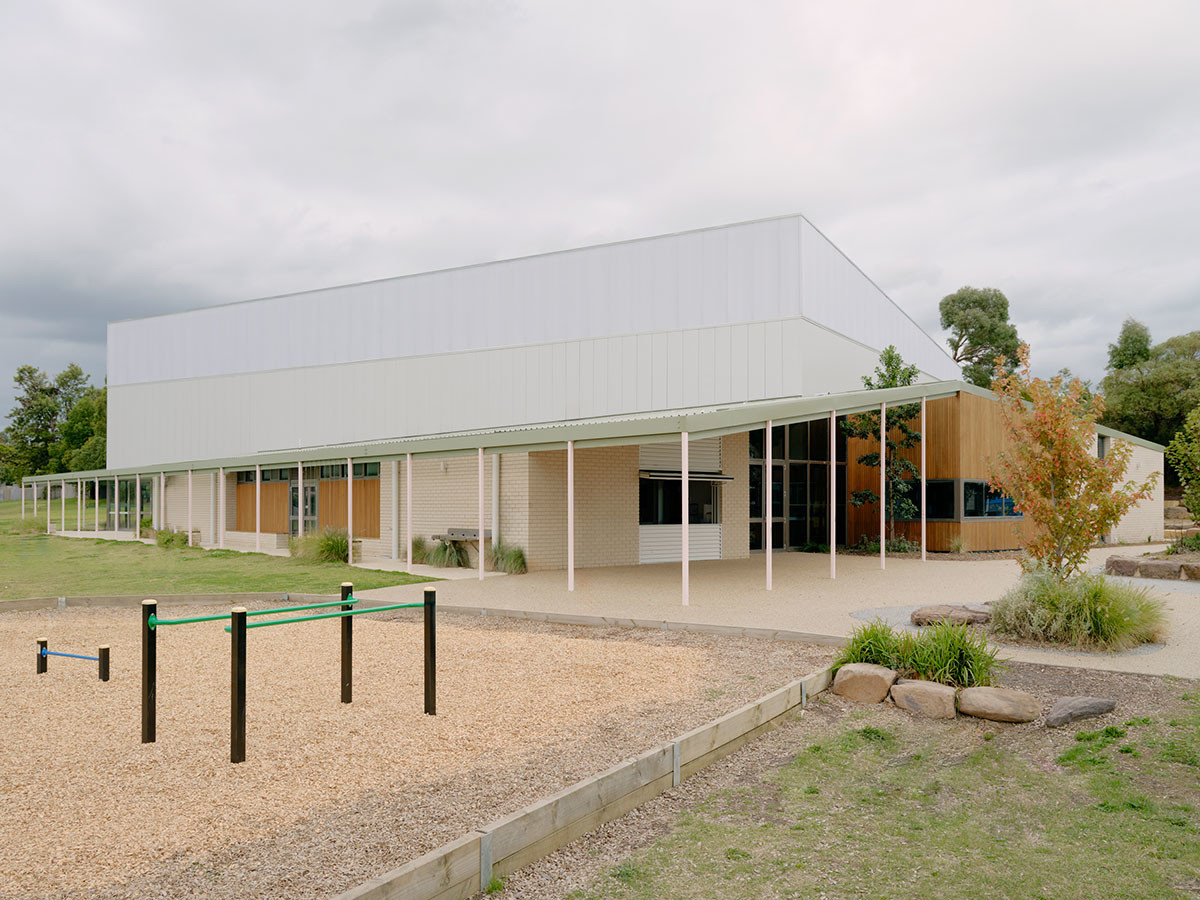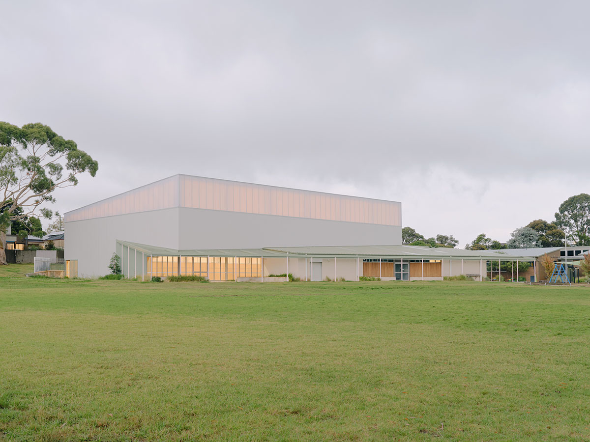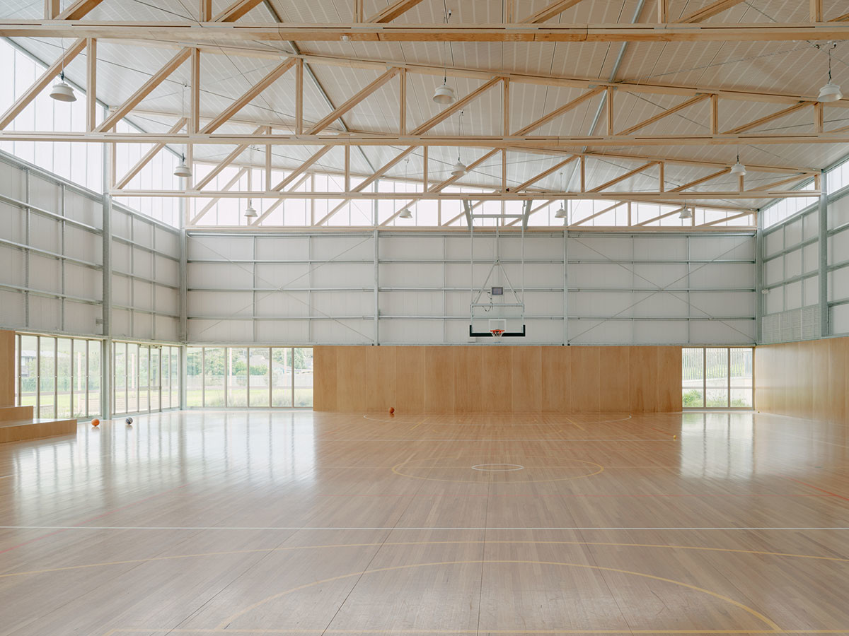 The new Community Hub contains a gymnasium, music room, canteen and staff rooms. The facility, strategically located to address both the sports oval and the existing school buildings, mediates civic presence and human scale.