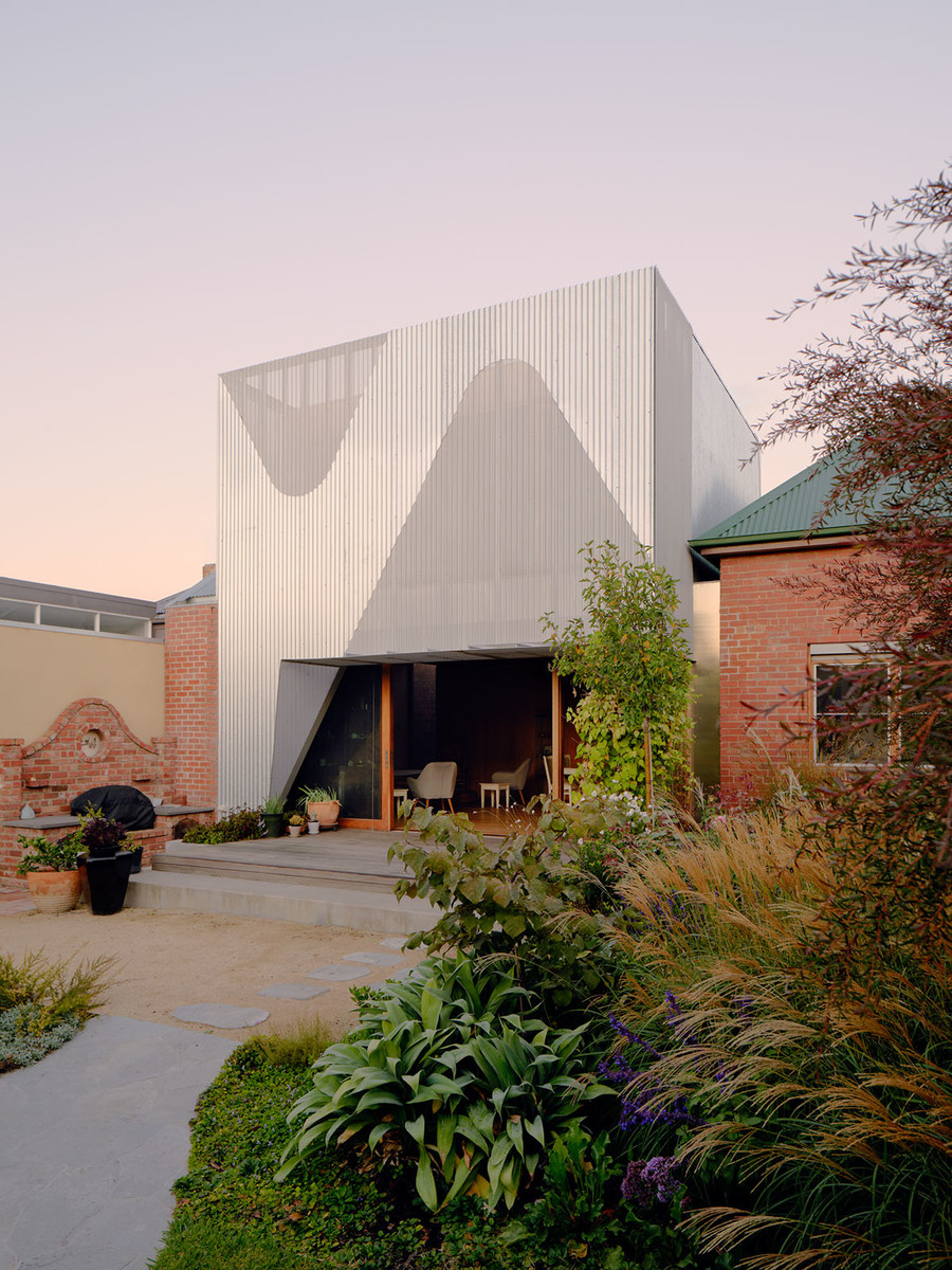 “Galvanised,” Andrew says to a guest, running his hand along the shimmering cladding, “it reminds me of engines and old sheds. Honest, no fuss.” Frances smiles, already knowing the line. For her, it is less about engines and more about light. She watches how it shifts across the perforated screen, catching shadows, throwing lacework onto walls.