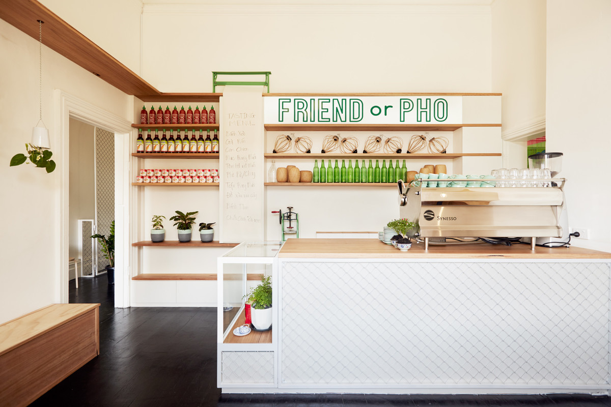 The brief for Friend or Phó was to design a contemporary Vietnamese restaurant in Yarraville, serving hawker-style food for indoor and outdoor dining. The kitchen was designed with flexible preparation areas allowing for menu changes throughout the seasons while seating accommodates large and small groups to suit a variety of needs.