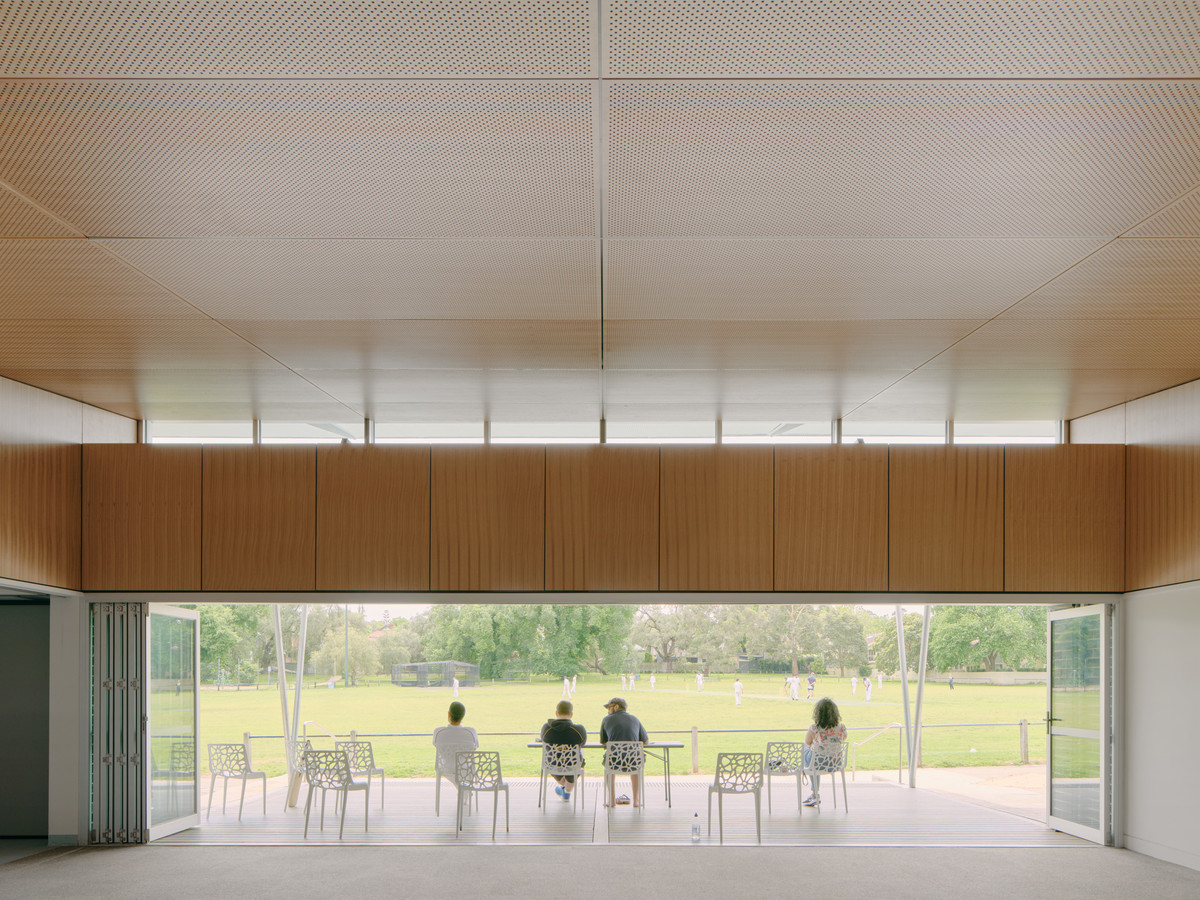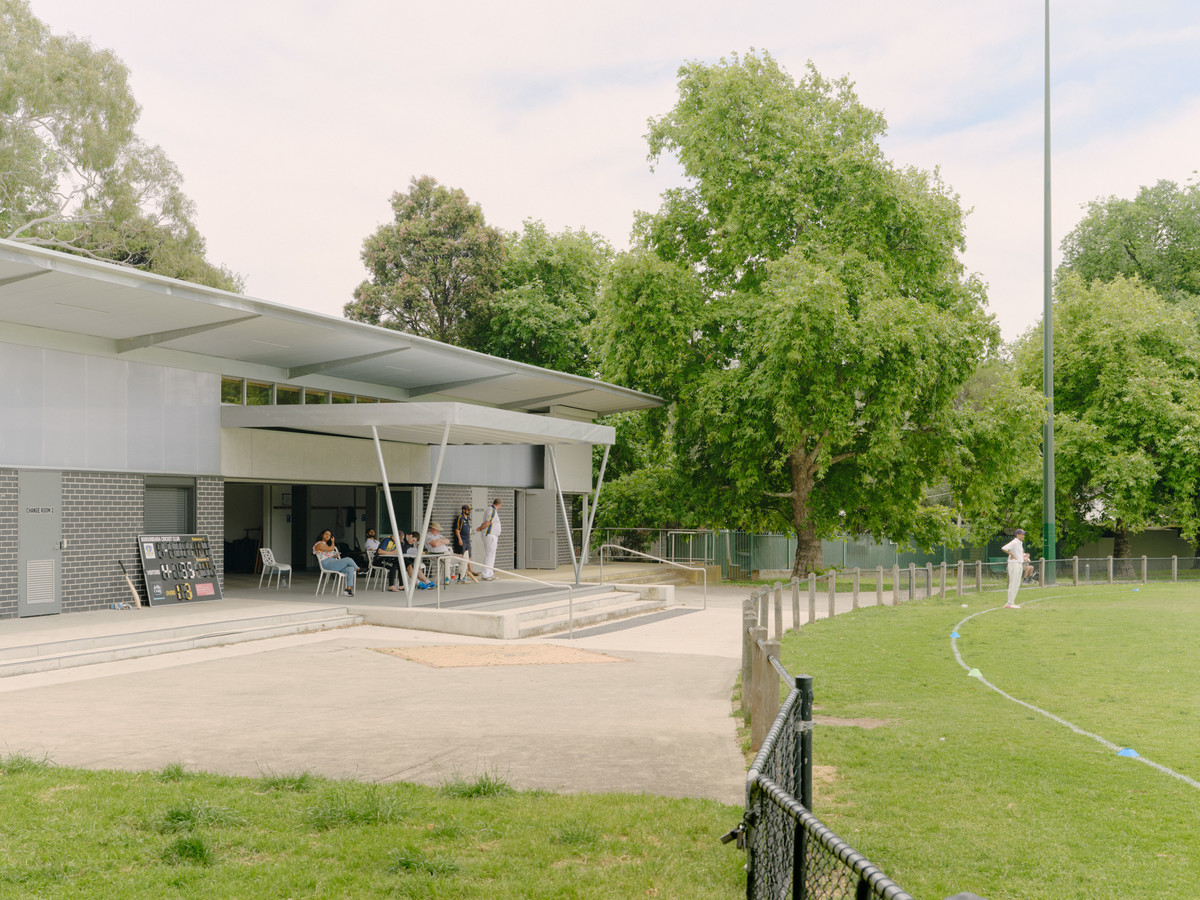 As a host to cricket and footy club BBQs, awards nights and community fundraisers, the social room is the life of the party and a bustling hub for social activity. With added floor area that spills out onto an extended outdoor patio, bi-fold doors seamlessly mediate the boundaries of inside and outside, while improving visibility of the sports oval. A retractable awning stretches across the external patio, shielding patrons from the weather. Conversely, it neatly retracts for increased solar access to the pavilion’s interior.