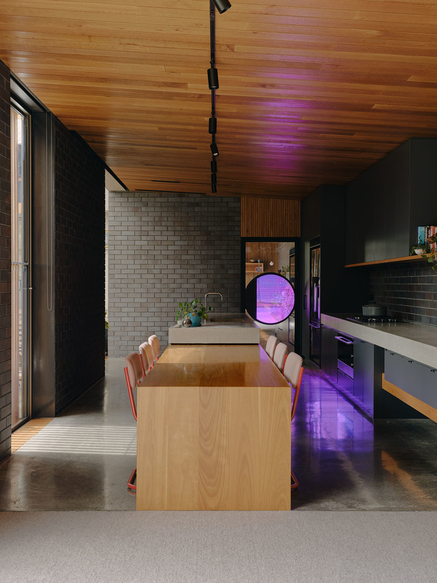 Kids down one end of the house, parents down the other, food and entertainment in between. Where old meets new, things open-up: a little light relief for swinging cats, making mess and would you please sit down and do your homework please!