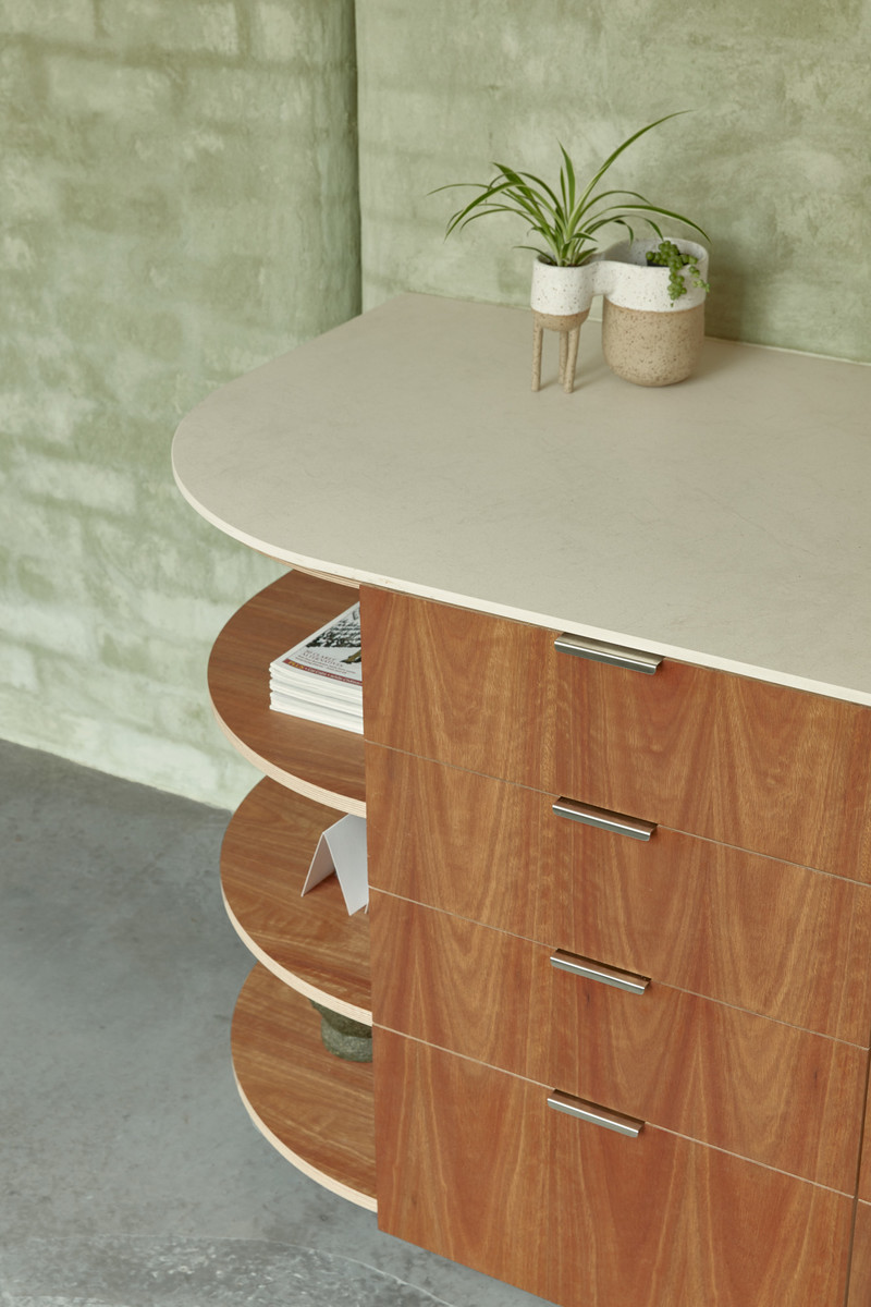 Curious neighbours slow their cars. From between the trees across a vast nature strip, a fence-like shed with a cyclops eye peers back at them. ‘Whose world is this?’ they ask. This street-side pavilion is an artist’s studio; the window is her muse. It’s timber wall, garden-nestled, curves from the street. With it bends a path.