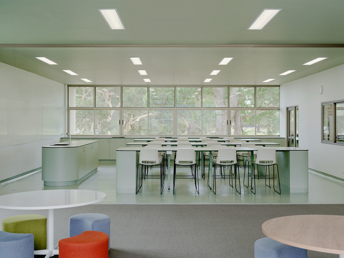 Architecture architecture was the principal consultant for the South Oakleigh College masterplan, with the science building as the first stage of its transformation. As the cornerstone of the STEAM precinct, it features specialised laboratories for chemistry, biology, and physics, alongside flexible classrooms and adaptable spaces supporting multi-modal, 21st-century learning.