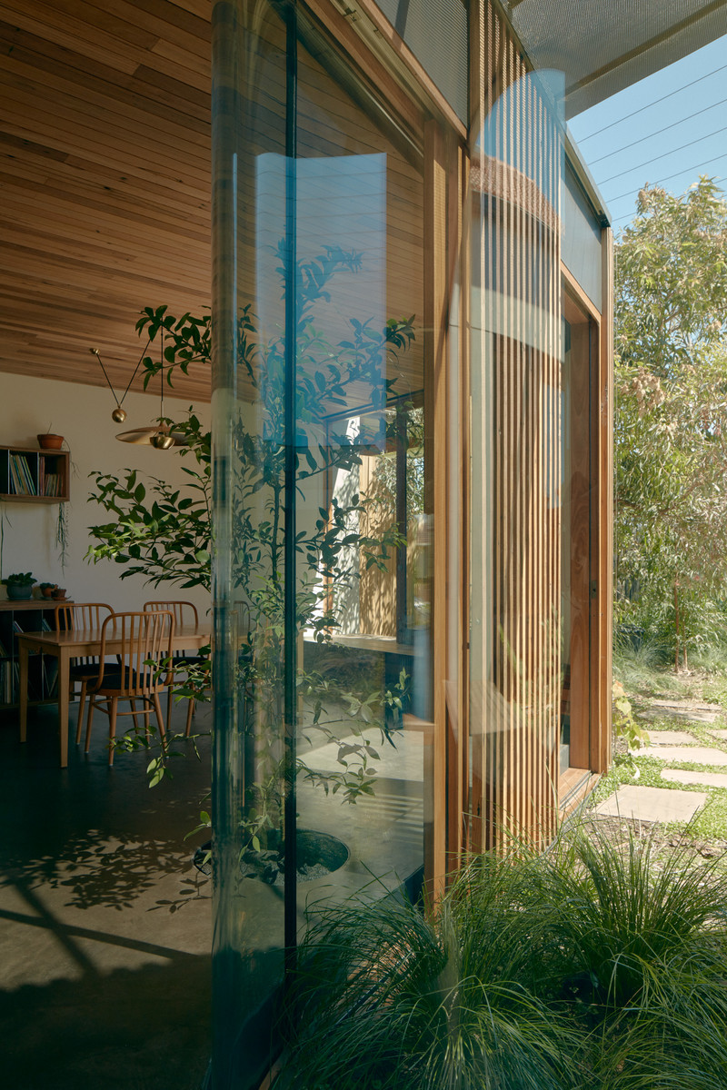In time this house will be consumed by its gardens. Already the buzz of pollination fills the air: bees, blowies and butterflies. Nestled between three native crops, nature has the jump start. An extension to an existing Thornbury cottage, the new living areas are landscape as much as they are house, tangled through with greenery.